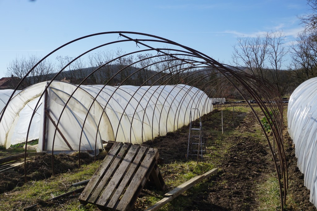 A kertben hivatalosan is elindult a szezon a jó idő érkeztével az utóbbi hetekben. Ilyenkor az első teendők az infrastruktúra rendbetétele és fejlesztése, ami elsősorban a fóliákat jelenti. Az utóbbi szeles idők, amúgy is próbára tették őket, így az ajtókat renoválunk kell.